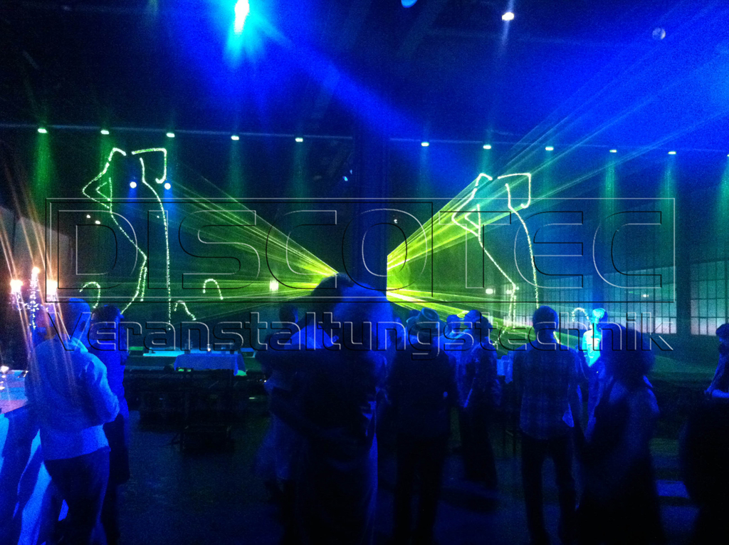 Whether indoor or outdoor, party, anniversary, trade fair, gala or open air event: Discotec turns your event into an impressive experience with a laser show. Company logo, animations and custom graphics as projection included!